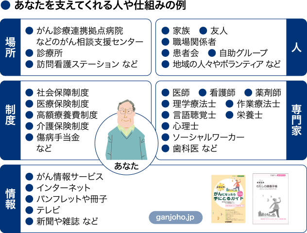 がんの情報収集には、「がん相談支援センター」の利用もお勧めします。がん相談支援センターでは、がんに関するさまざまな相談を受け付け、診断・治療から、療養生活、仕事との両立・職場復帰、医療費助成・支援制度など、患者さんやご家族が必要とする幅広い情報を提供しています。必要な情報の探し方がわからないときも相談スタッフに一緒に探してもらうことができます。